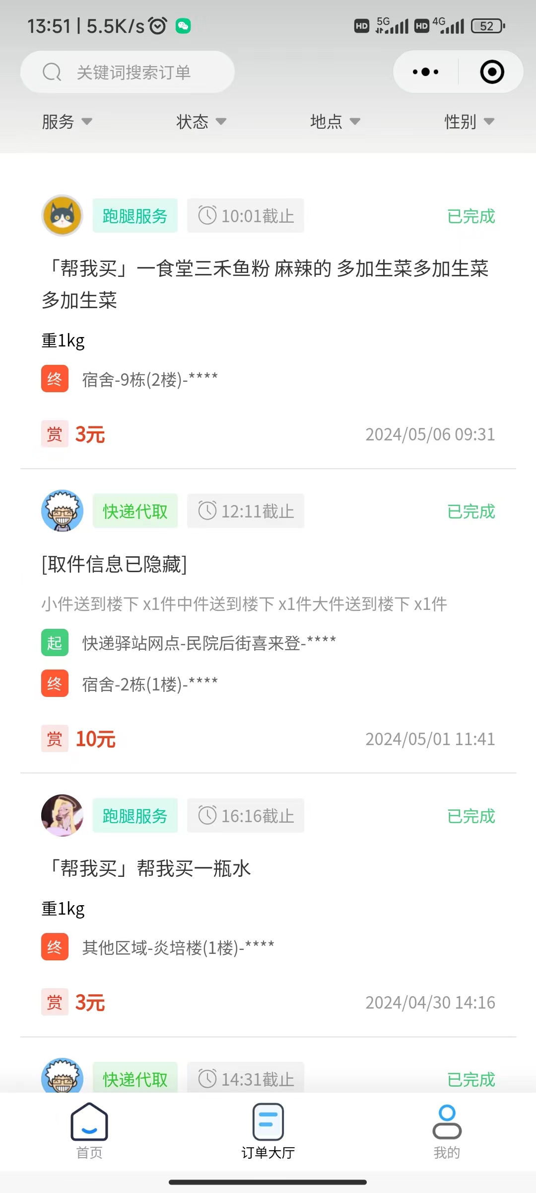 我们为同学提供快递代取服务将您的快递送到您前门前